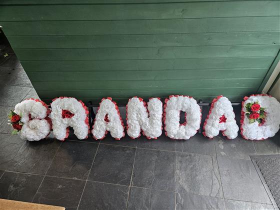Please note letters can be done with different coloured ribbon to what is shown in the photo. Please let is know the colour of ribbon you would like and we will do the roses to match.