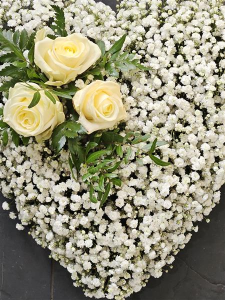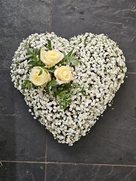 A delicate gypsophila Heart tribute can be created with a different colour roses and in 2 different